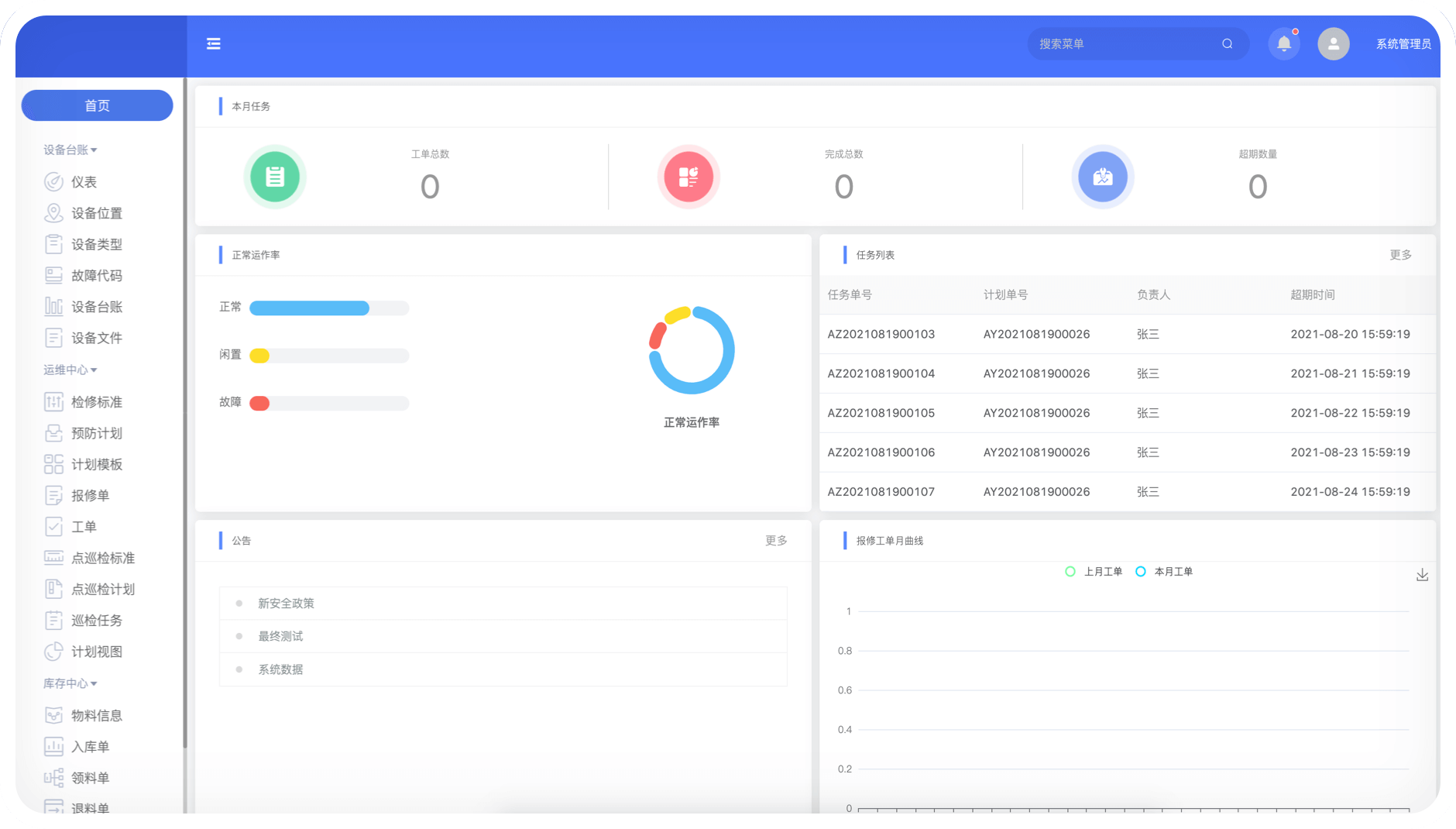 以设备全生命周期为主线,围绕保养、维修、点检巡检三个方面,采集设备基础数据与运行数据,进行实时的统计分析,帮助企业实现设备的规范化、科学化、智能化管理,降低设备故障率,保持设备稳定性,实现企业资产效益的全面提升。
