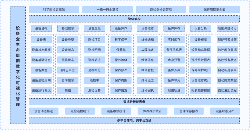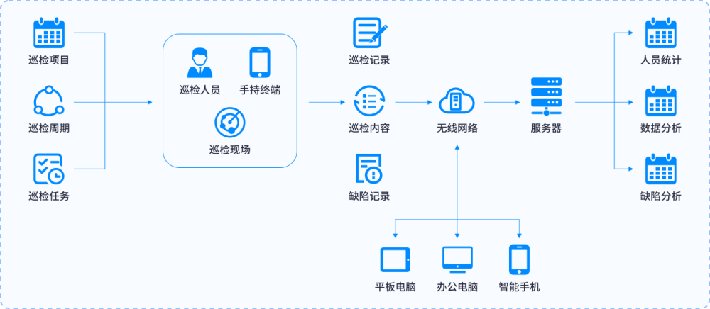 智能巡检系统解决传统巡查工作局限问题,降低人力工作成本,有效改进现有落后的巡检管理模式,采用现代信息化智能巡检管理系统,对巡检工作及设备进行全程监控与数字化管理,使巡检管理更加的智能化、人性化、平台化。