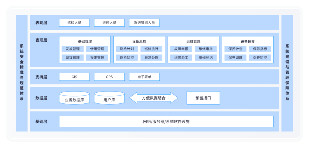 巡检人员少,需检查设备数量大,设备分布地域广,巡检工作量大,无法远程监控设备运行情况、故障情况。